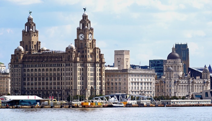 Machen Sie sich auf den Weg zum Pier Head, wo sich das Royal Liver Building neben dem Cunard Building und dem Port of Liverpool Building befindet. Die Uhrentürme sind schon von weitem sichtbar.