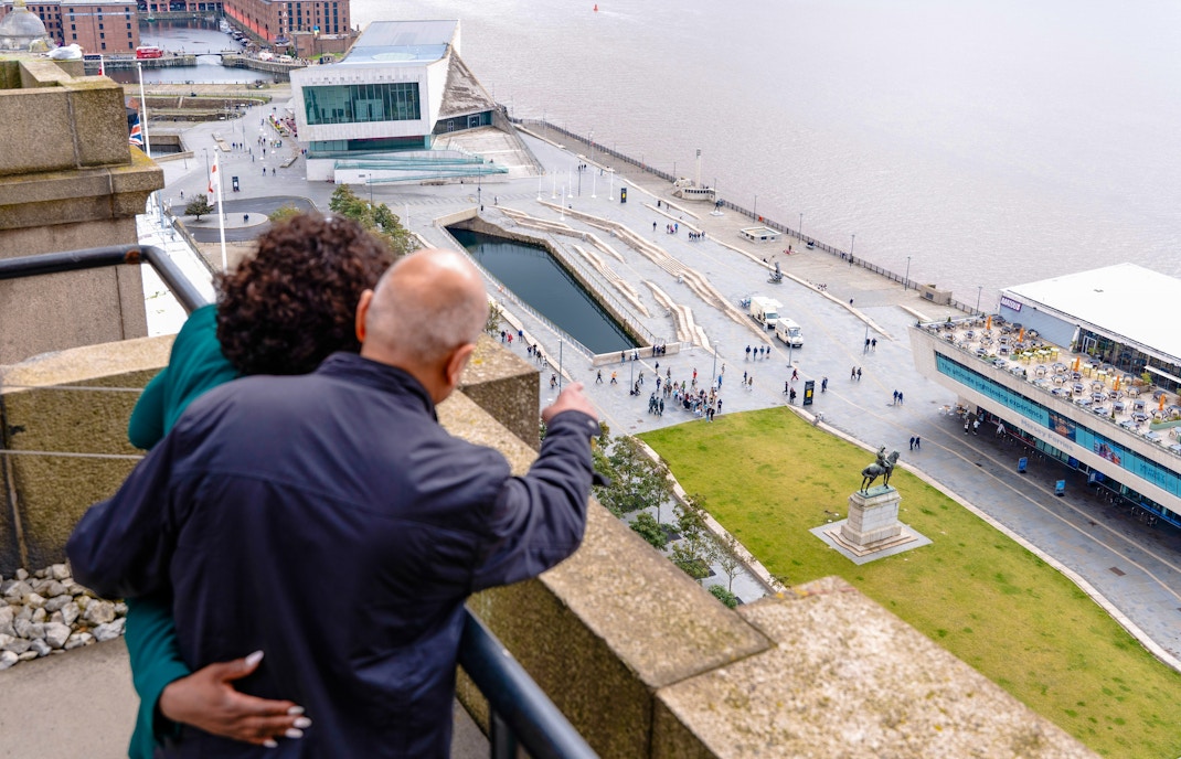 Der Besuch endet, nachdem Sie den Blick über den Fluss und die Stadt genossen haben. Von hier aus gelangen Sie zurück zum Pier Head, in dessen Nähe sich Cafés und Spazierwege am Wasser befinden.