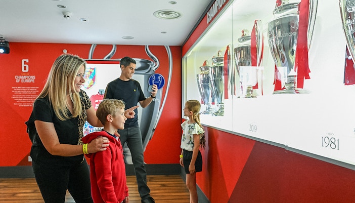 Faça uma viagem pelos bastidores em uma visita guiada em Anfield para ver de perto o museu do LFC.